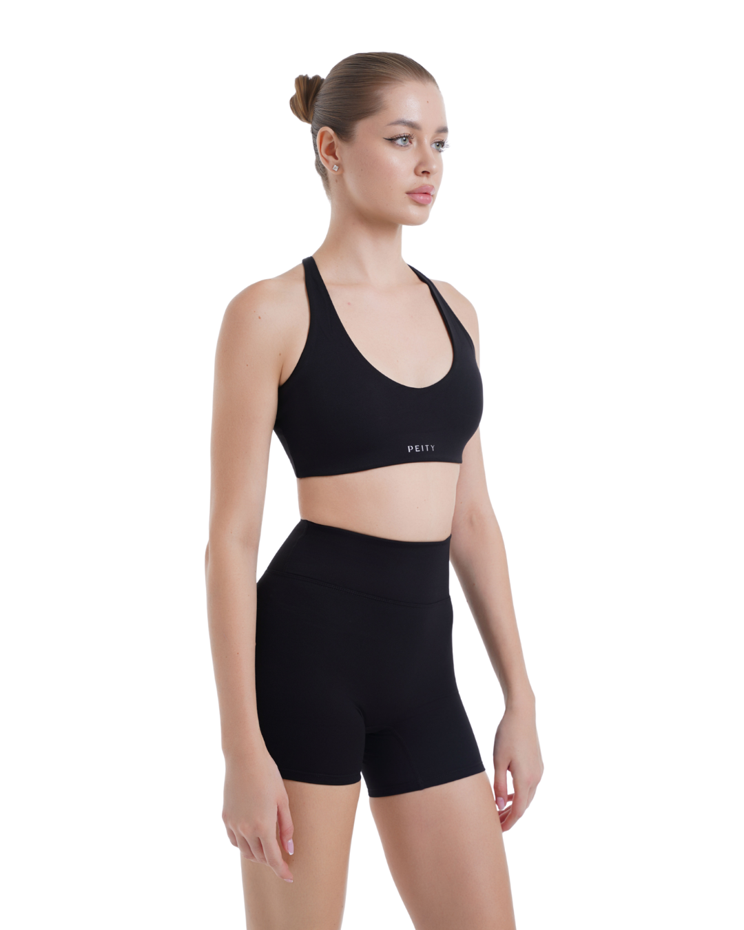 The complete activewear set includes ( 4 piece ) a seamless racerback sports bra, high-waist leggings, biker shorts, and a sleek zip-up jacket — crafted for movement, comfort, and everyday elegance.