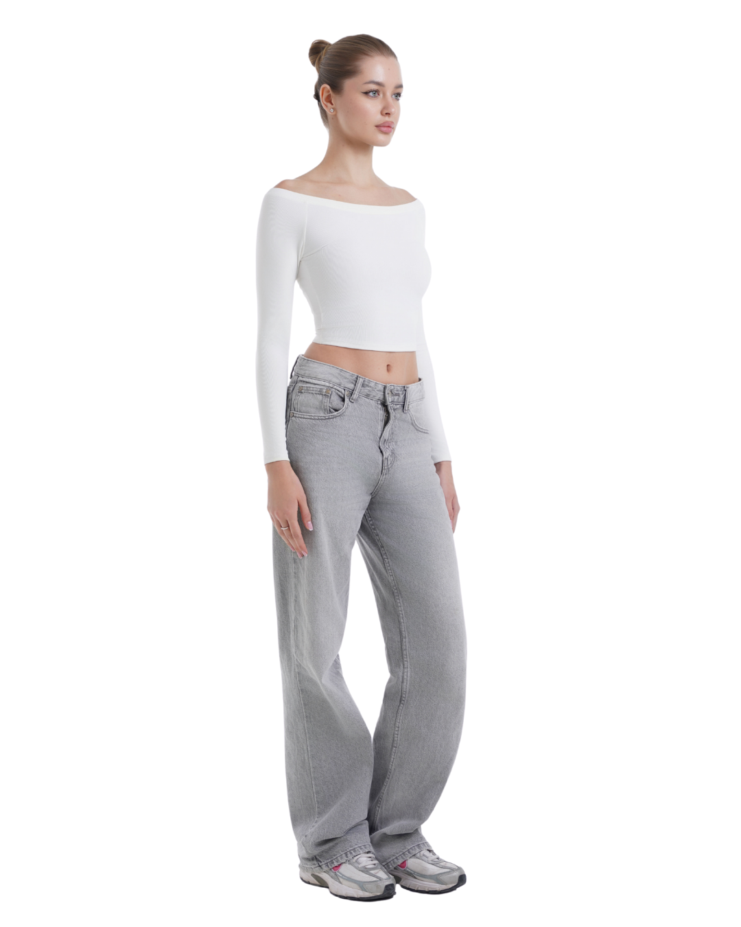A minimalist off-shoulder crop top designed to elevate your everyday essentials. Crafted from soft, ribbed, and stretchy fabric that hugs the body comfortably while keeping a sleek silhouette. The long sleeves and wide neckline add a touch of sophistication, making it easy to dress up or down.